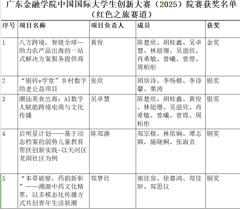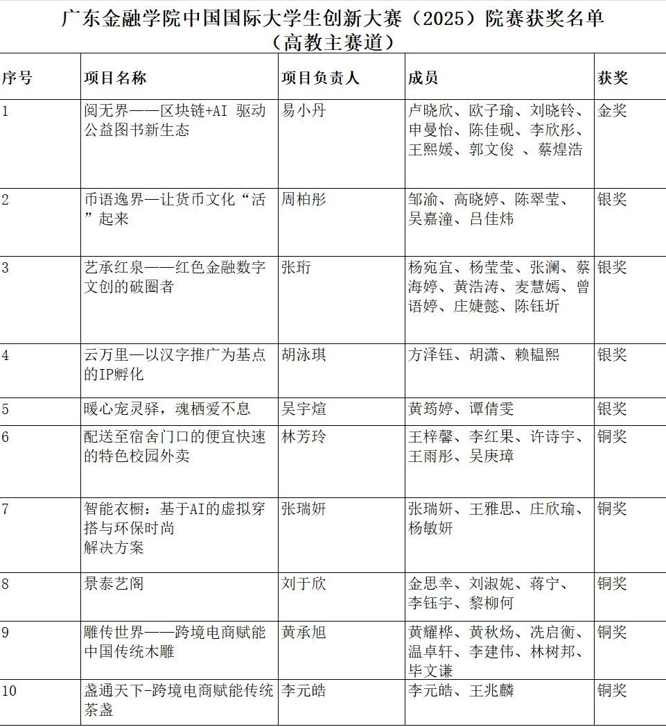 近日,2025中国国际大学生创新大赛院赛阶段结果揭晓,外文学子在高教主赛道与红色之旅赛道中表现亮眼,经评委严格审核,多个项目斩获佳绩。其中,易小丹同学带领的团队(项目名称:阅无界——区块链+ AI驱动公益图书新生态)和黄俊同学带领的团队(项目名称:八方跨境,智链全球—助力农产品出海的一站式解决方案服务提供商)分别获评高教主赛道和红旅赛道院赛金奖项目,成为学院创新实践的标杆代表。
