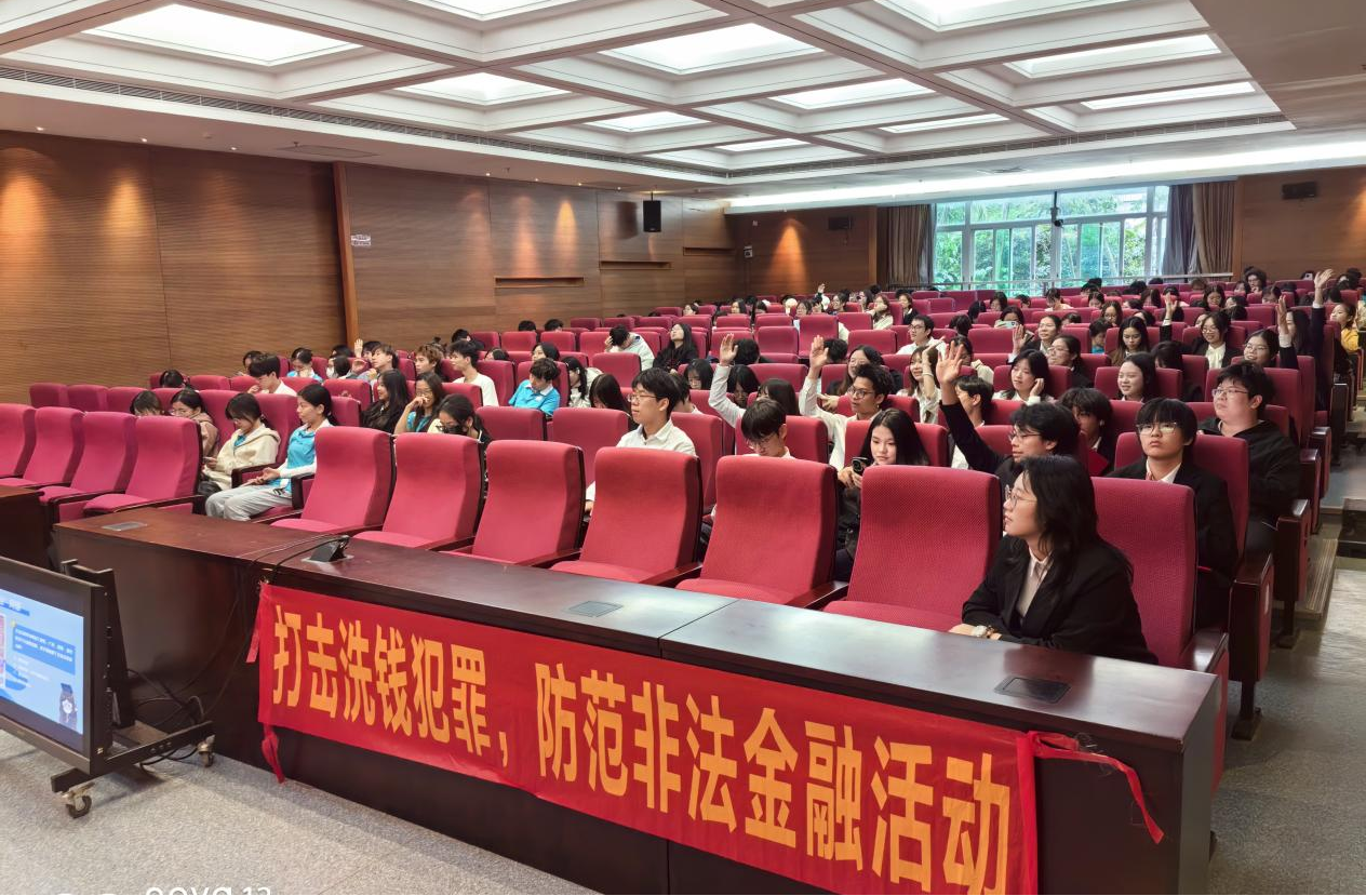 在互动交流环节,现场同学踊跃提问,围绕“如何辨别正规与非法金融产品”、“遭遇非法集资或诈骗后应如何维权”、“外语专业学生进入金融行业的路径与准备”等热点问题展开深入交流,现场讨论氛围热烈,掌声不断。