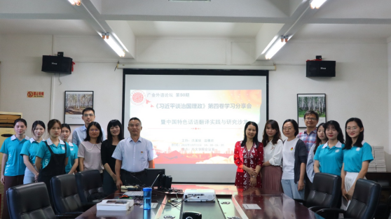 为深入学习贯彻习近平新时代中国特色社会主义思想,深入学习领会《习近平谈治国理政》第四卷的重要精神,10月11日下午,Beat365唯一官方网站翻译研究所举办第50期“广金外语论坛”,本期论坛的主题是《习近平谈治国理政》第四卷学习分享暨中国特色话语翻译实践与研究研讨。