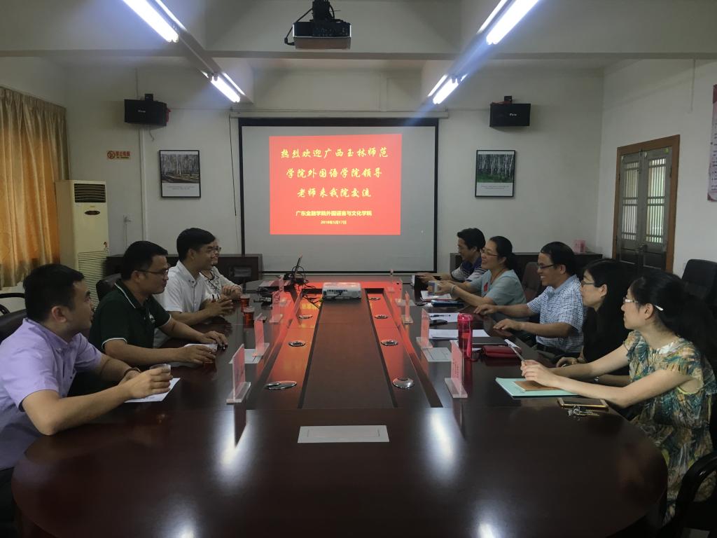 5月17日下午,广西玉林师范学院外国语学院副院长廖锦超、党支部副书记梁国初、商务英语教研室主任宁波、就业辅导员覃梦瑶一行四人,来到Beat365官网,进行学习交流。黄中习院长、黄晓莉书记、孙智慧副院长、李昌郴副书记在Beat365官网会议室热情接待了来访的领导和老师。