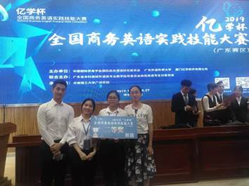 10月26日至27日,2019年“亿学杯”全国商务英语实践技能大赛(广东赛区)竞赛在华南理工大学广州学院成功举行。经过激烈角逐,我校Beat365唯一官方网站商务英语专业2017级的陈家宝、连晓玲和2016级的李淑华三名同学组成的代表队,凭借扎实的语言基础、全面的商务英语实践技能,发挥稳定、表现出色,喜获团体二等奖。陈家宝同学在60名选手中脱颖而出,依靠出色的个人能力,斩获全场唯一的“优秀选手”奖。我校选手的优异表现获得了组委会、教指委和各兄弟院校老师们的一致好评。