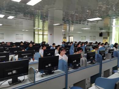 早上10:30专业组决赛在实验中心701正式开赛,选手们采用机考方式作答,在90分钟的时间内完成一篇500-600词的文章。大赛不仅考察选手们的专业知识、写作能力和思辨能力,同时也检验了学生熟练操作电脑答题的能力。