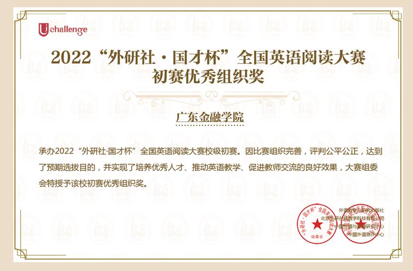 Beat365官网获得2022“外研社·国才杯”全国英语阅读写作大赛初赛优秀组织奖