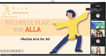本次大赛评选分为两个部分:①六个小组(分专业和非专业组)依次充分展示并演讲全英的参赛策划书,演示与企业运营相关的各种商务活动;②各组组员围绕主题并根据评委老师的问题进行答辩。
