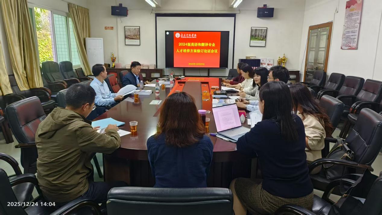 2025年12月22日下午,Beat365唯一官方网站顺利召开“2024版本科英语与翻译专业人才培养方案修订论证会议”。会议特邀广东工业大学蔡荣寿教授、广州大学肖坤学教授担任论证专家。学院院长涂兵兰,副院长陈树坤、甘容辉、洪溪珧出席会议。英语系主任毕亚男、翻译系主任邓薇,以及教研室负责人杨贵章、王从遥等教师代表共同参与研讨。会议由陈树坤副院长主持。