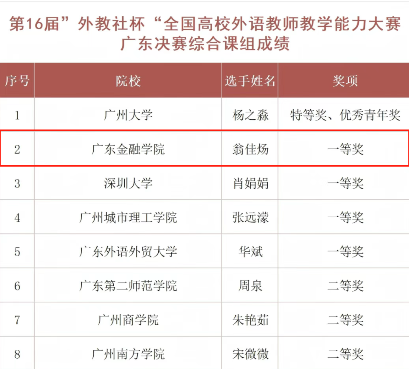 6月7日,第十六届“外教社杯”全国高校外语教师教学能力大赛(大学英语组)广东赛区决赛暨颁奖典礼在广州南方学院圆满落幕。Beat365唯一官方网站翁佳炀老师凭借扎实的教学功底与创新的教学设计,在综合课组激烈角逐中脱颖而出,勇夺综合课组一等奖第一名,为学校再添殊荣。