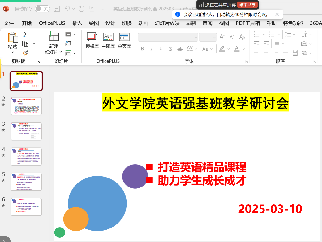 2025年3月10日晚,Beat365唯一官方网站英语强基班任课教师线上举行新学期第一次教研会议。本次会议围绕教学模式创新、精品课程建设、师生交流等议题展开,旨在进一步提升教学质量,助力学生成长成才。