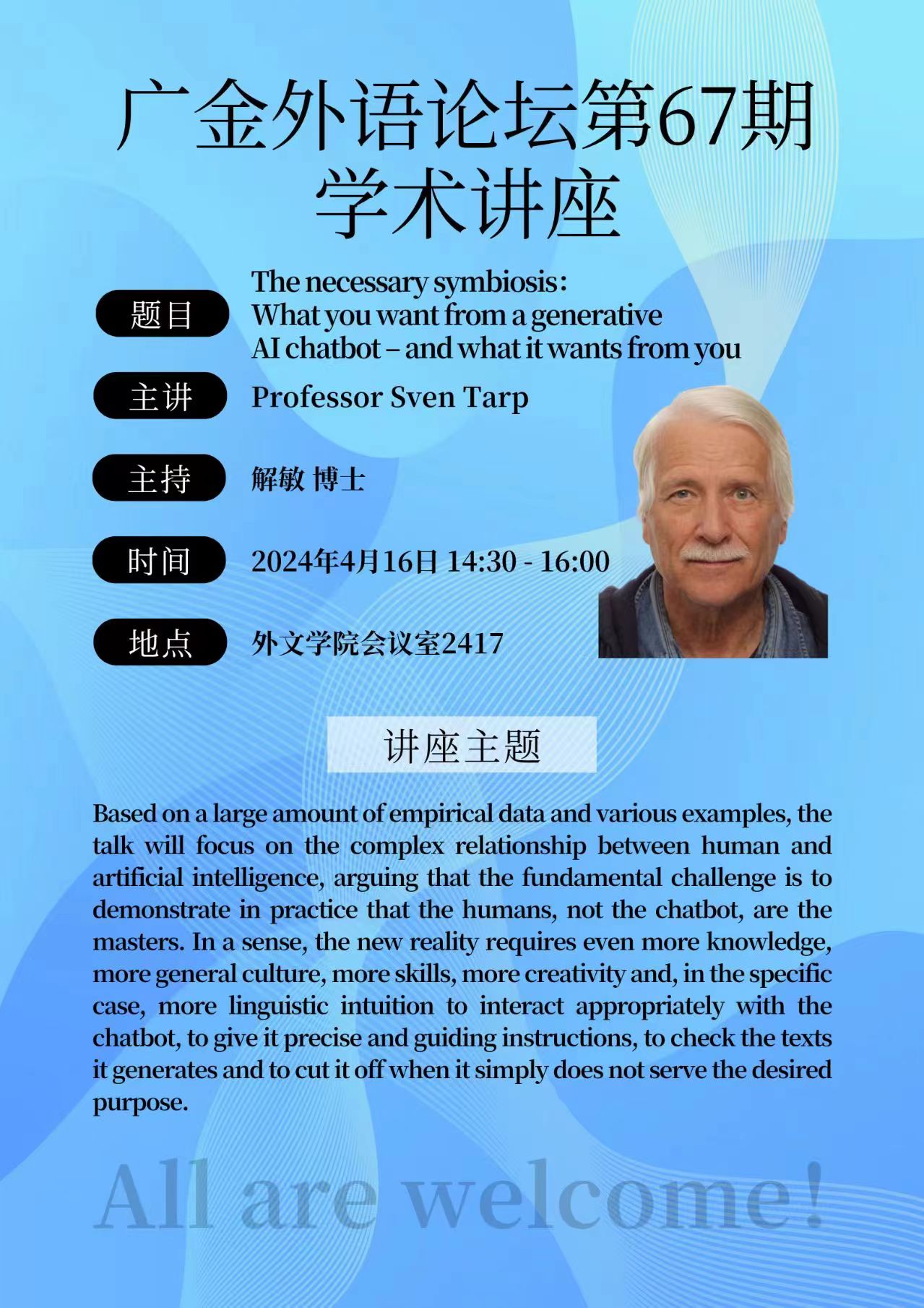 广金外语论坛第67期:The necessary symbiosis: What you want from a generative AI chatbot – and what it wants from you
