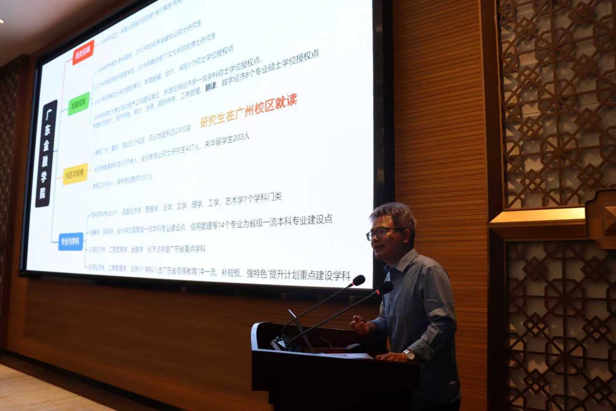 广州工商学院外语学院院长刘沛富、副院长高亮及毕业班辅导员组织40多位有意报考翻译专业硕士研究生的应届毕业生到会交流。